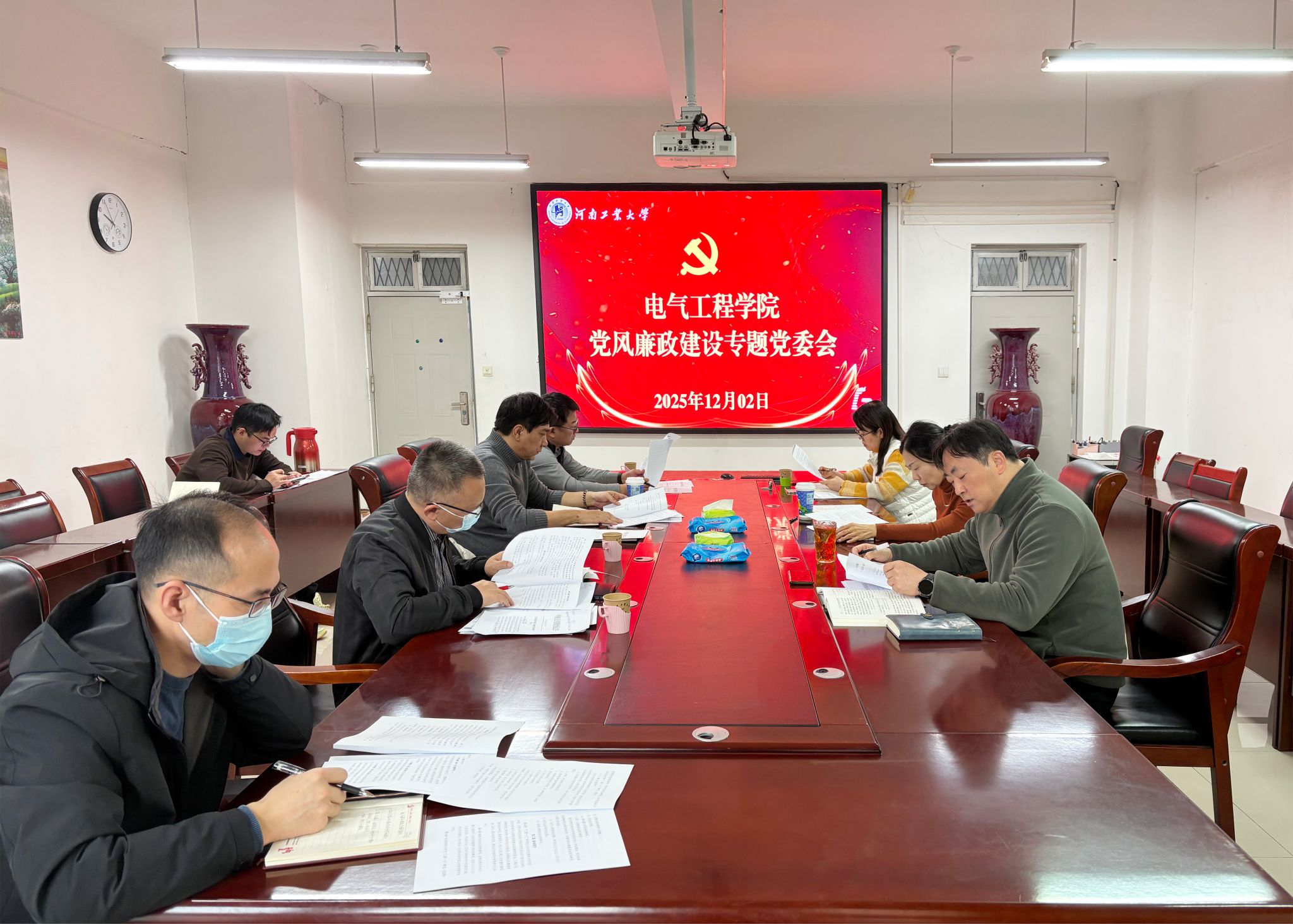 为深入贯彻落实习近平总书记关于廉洁文化建设和加强党的纪律建设的系列重要讲话精神,12月2日,电气工程学院在惟志楼31-440会议室召开2025年下半年党风廉政建设专题党委会,学院党委委员、领导班子全体成员参加会议,会议由院党委书记王建辉主持。