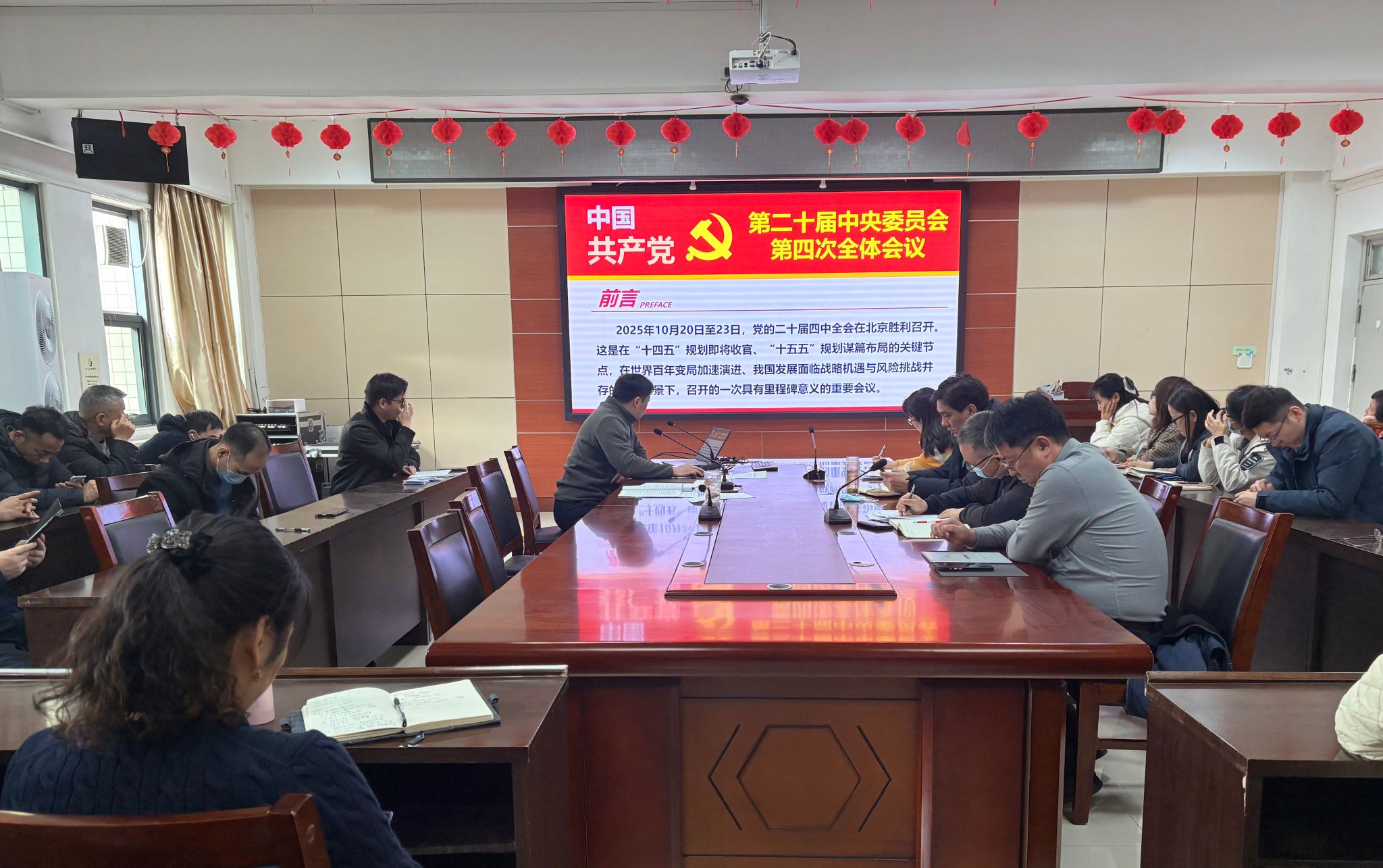 王建辉强调要深入贯彻落实党的二十届四中全会精神,谋划好“十五五”时期学院高质量发展各项重点任务。要坚持在深学细悟中把准方向、筑牢根基,夯实高质量发展的思想基础;要加强顶层设计,科学系统谋划,高质量编制学院“十五五”发展规划;要崇尚实干、狠抓落实,持续推动各项重点工作落地见效;要坚持以党建为引领,促进党建与业务工作深度融合,奋力谱写学院高质量发展的新篇章。