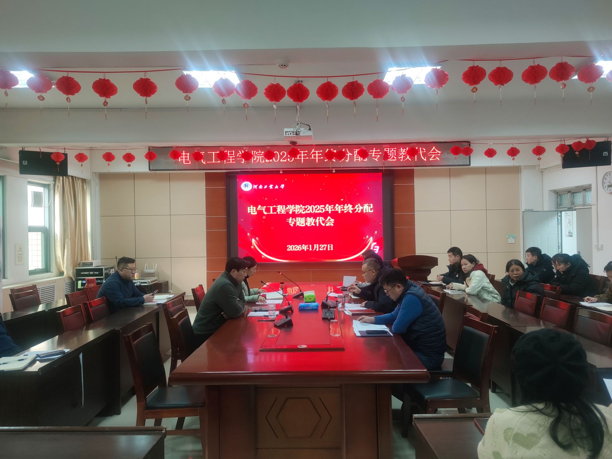 1月27日,电气工程学院在31444会议室召开2025年度专题教代会,会议讨论并审议通过了《电气工程学院2025年度年终分配方案(讨论稿)》。学院班子成员和教代会正式代表参加了会议,会议由学院党委副书记、工会主席张自广主持。