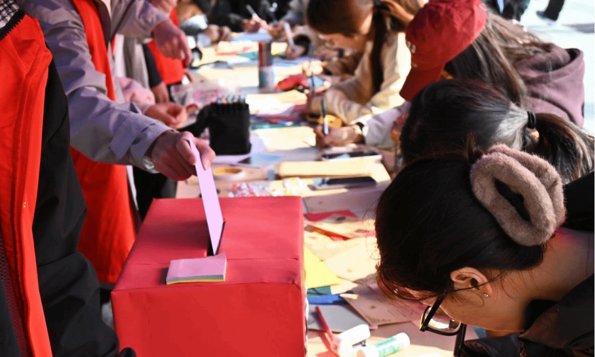 活动当天,钟楼广场专区提前布置完毕,信纸、信封与签字笔等文具齐备,现场秩序井然。随着参与同学陆续到来,活动逐渐进入高峰,尤其在中午时段,不少同学前来咨询流程、领取文具并静心书写。工作人员全程值守,耐心引导秩序、解答信件保管与返还事宜,确保活动顺利进行。